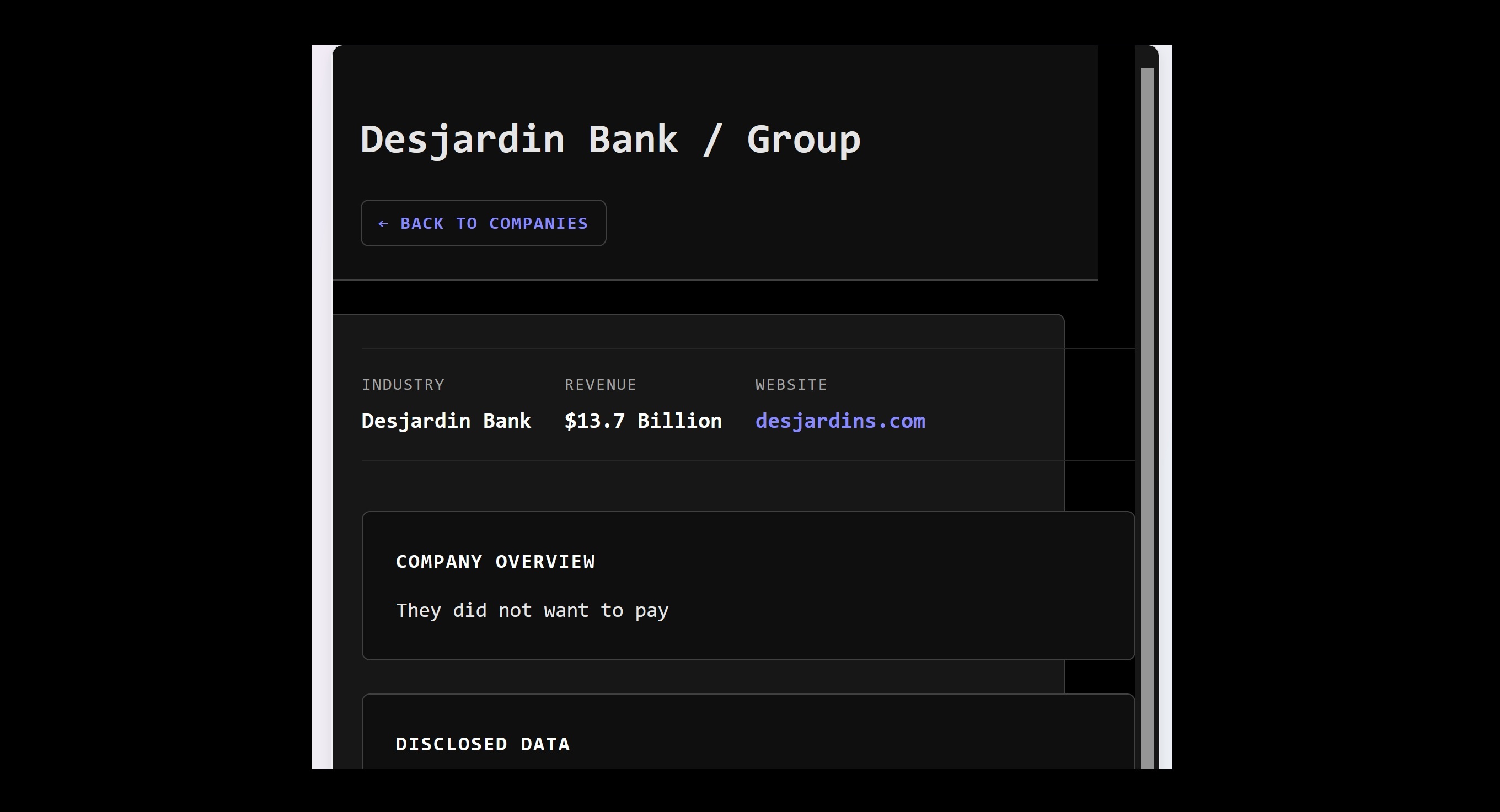 Notably, at the time of this post, there has still been no coverage by any of the major Canadian media outlets. CyberAGroup did reach out to media contacts, and there has been no statement from Desjardins.
